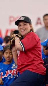 Rocío Nahle lanza la primera bola en campeonato de Ligas Pequeñas