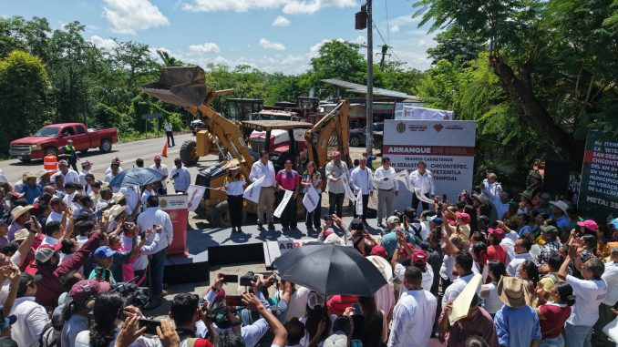 Como tercer punto, se dio el inicio de arranque al mantenimiento integral de la carretera estatal San Sebastián–Chicontepec, del kilómetro 00+000 al 35+470, lo que mejorará la conectividad entre Citlaltépec, Chontla, Ixcatepec y Atlapexco.