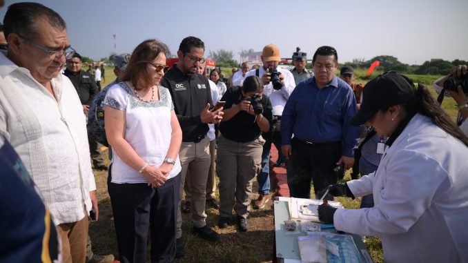 Acompañada por integrantes del Gabinete de Seguridad y del general Miguel Ángel Rodríguez Gutiérrez, comandante de la 26/a Zona Militar, la Mandataria destacó la importancia de este tipo de acciones en la lucha contra la delincuencia y la protección de la sociedad.