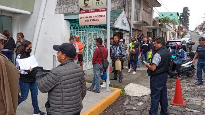 Irineo Pérez Melo.- En protesta por el burocratismo y de las medidas unilaterales impuestas imperante en las Oficinas de Hacienda del Estado de Xalapa Norte, prestadores de servicio y contribuyentes no pueden realizar sus trámites de emplacamiento de sus vehículos, ya que tienen que pasar largas horas para realizar el trámite respectivo al no poder agendar citas.