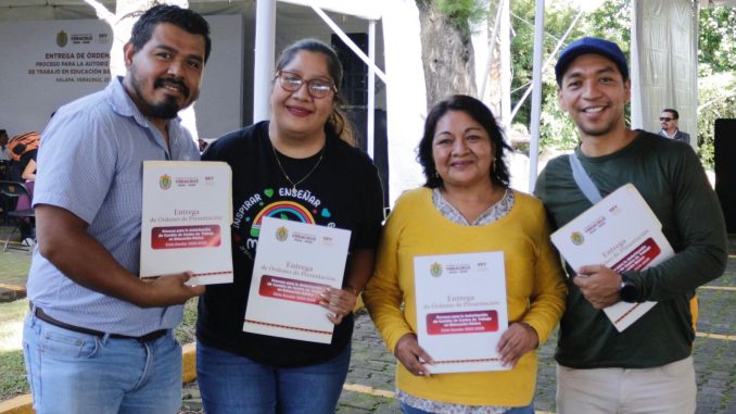 Xalapa, Ver., lunes 29 de septiembre de 2025.- La Secretaría de Educación de Veracruz (SEV) cumple con el magisterio y brinda certeza laboral al entregar 5 mil 37 órdenes de presentación a personal educativo, técnico docente, de asesoría técnica pedagógica, así como a directivos y supervisores que participaron en los procesos de autorización de Cambio de Centro de Trabajo en Educación Básica, ciclo escolar 2025-2026.