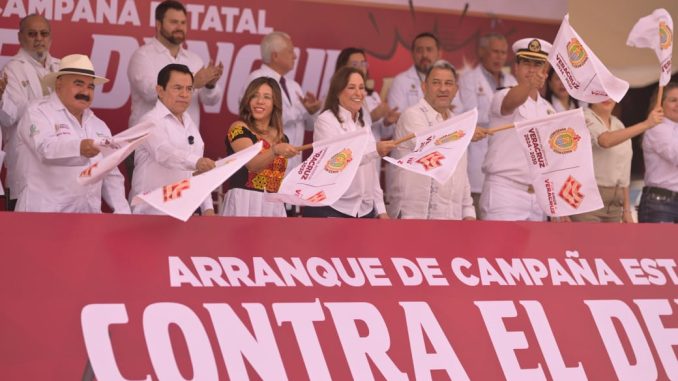 Coatzacoalcos, Ver., miércoles 01 de octubre de 2025.- Con un llamado a la corresponsabilidad ciudadana, la gobernadora Rocío Nahle García dio el banderazo de arranque a la Campaña Estatal de Lucha contra el Dengue, cuyo objetivo es alcanzar la meta de cero casos en Veracruz.