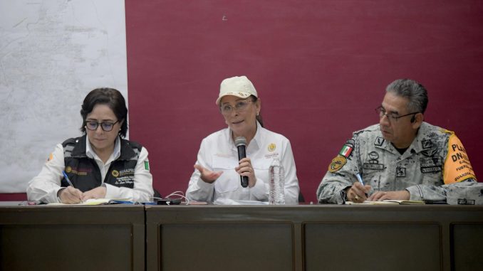 La Mandataria instruyó mantener una operación conjunta entre el Gobierno del Estado, la Federación y los ayuntamientos, con la participación de la Secretaría de la Defensa Nacional (Defensa), la Guardia Nacional, la Comisión Nacional del Agua (Conagua) y Protección Civil Estatal.