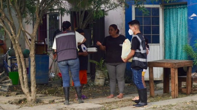 En Álamo, uno de los municipios con mayores afectaciones, continúan las labores de entrega de insumos básicos, agua y comidas calientes preparadas, así como la supervisión de albergues donde se resguarda a quienes tuvieron que dejar sus viviendas.