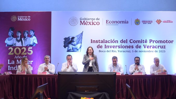 Boca del Río, Ver., miércoles 05 de octubre de 2025.- La gobernadora Rocío Nahle García encabezó la instalación del Comité Promotor de Inversiones de Veracruz, un órgano estratégico que forma parte del Plan México, orientado a consolidar una política industrial nacional, facilitar la inversión y fortalecer la cadena productiva en los estados.