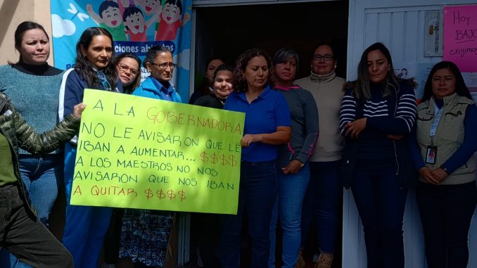 Denuncian docentes del Jardín de Niños Enrique Pestalozzi descuentos en su nomina