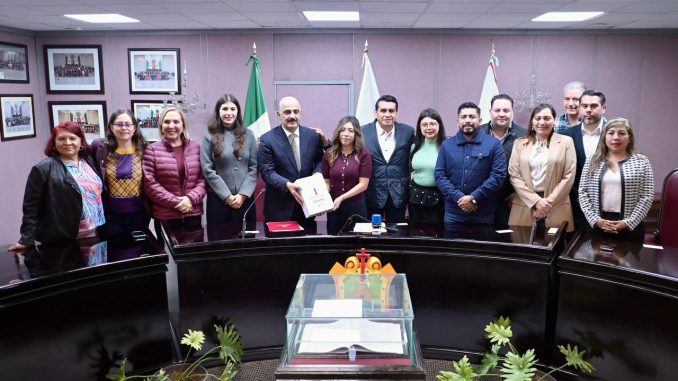 Xalapa, Ver., 15 de noviembre de 2025.- En representación de la LXVII Legislatura, la  Mesa Directiva, presidida por la diputada Naomi Edith Gómez Santos, y el presidente de la Junta de Coordinación Política (Jucopo), diputado Esteban Bautista Hernández, recibieron del titular de la Secretaría de Gobierno (Segob) del estado, Ricardo Ahued Bardahuil, el Primer Informe de Gobierno de la administración encabezada por la ingeniera Rocío Nahle García.