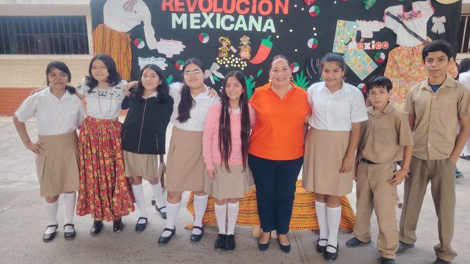 Pánuco, Ver.- La Mtra. Erika Méndez Pérez, fue ratificada como directora comisionada en la Escuela Secundaria Oficial Pánuco, por lo que este jueves 20 de Noviembre tuvo a su cargo con el apoyo del personal docente y la sociedad de padres de familia organizar un festejo revolucionario y kermes con la participación entusiasta de la comunidad estudiantil, haciendo mención que los recursos obtenidos son para realizar mejoras a la institución.