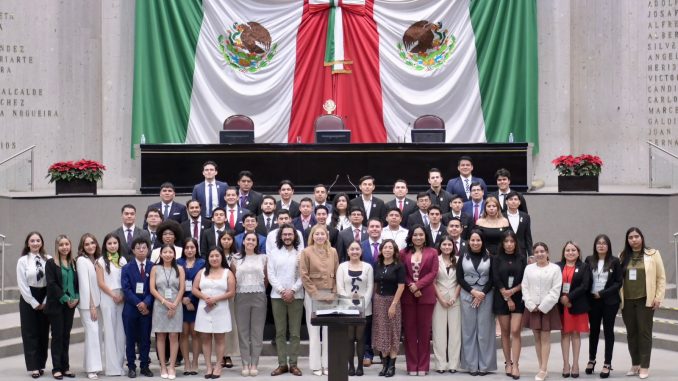 En presencia de la diputada Valeria Méndez Moctezuma y de los diputados Carlos Marcelo Ruiz Sánchez y Diego Casteñeda Aburto, la legisladora Naomi Edith Gómez Santos recordó a las y los parlamentarios que “la tarea no es parecer políticos, sino ser personas que transforman sin perderse en el camino” y que “Veracruz necesita una juventud que no espere un futuro que nunca llega, sino que se decida a mover el ahora”.