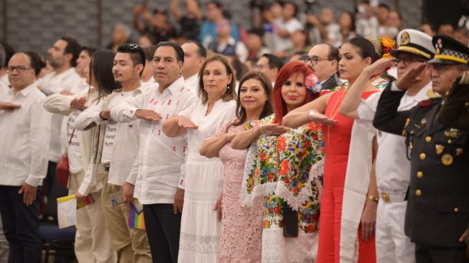 Al saludar a la Mandataria y agradecer su asistencia, Díaz Mena le expresó “bienvenida a Yucatán, mi reconocimiento y admiración. Una gran luchadora, mujer firme, valiente, que ha enfrentado viento y marea en los últimos tiempos, con un gran compromiso con el pueblo veracruzano”.