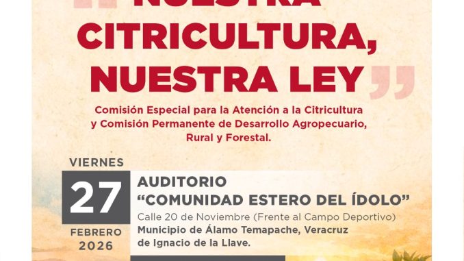 Xalapa, Ver., 24 de febrero de 2026.- Con el objetivo de construir un marco jurídico que responda a los retos actuales del campo veracruzano, la Comisión Especial para la Atención a la Citricultura anunció la realización de dos foros de consulta previa, abierta e informada para la creación de la Ley Citrícola de Veracruz, la primera de su tipo en el país.