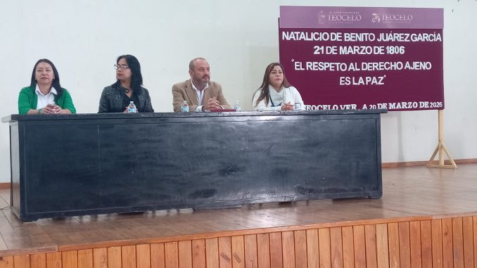 En la ceremonia conmemorativa al 220º Aniversario del Nacimiento de Don Benito Juárez García asistieron alumnos, directivos y personal docente de las escuelas Primarias Luis Hidalgo Monroy Benito Juárez, e Instituto Educativo Matel, la Secundaria General Teocelo y de Bachilleres Teocelo, así como decenas de padres de familias, quienes participaron en los honores al lábaro patrio.