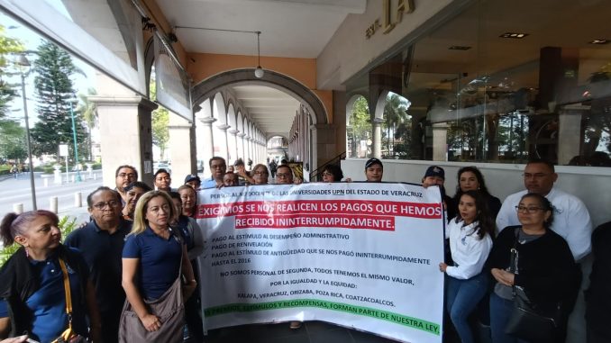 Los trabajadores inconformes, indicaron que, pese a haber ingresado solicitudes formales ante instancias como la Secretaría de Educación de Veracruz (SEV) y otras áreas gubernamentales, no han obtenido respuesta, lo que los llevó a manifestarse públicamente.